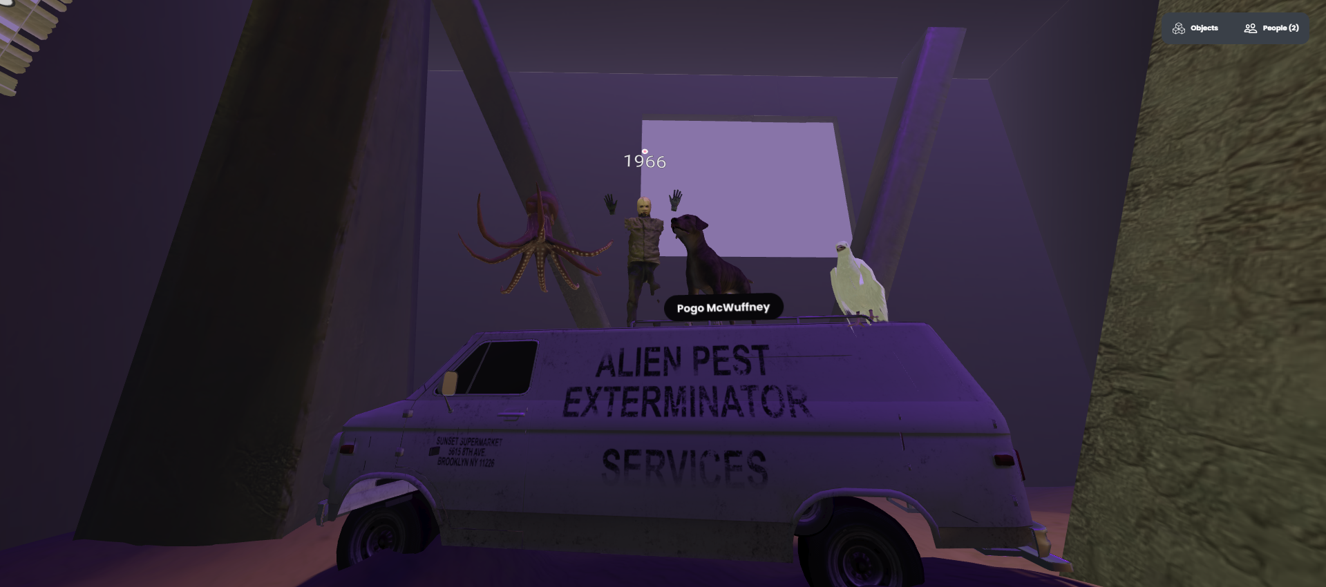 In addition, the musicians should also be visible in the room as a video livestream to clearly show the VR-inexperienced among the visitors what is happening. The implementation in Mozilla Hubs was obvious, because it is the lowest-threshold among the VR platforms and also relatively easy to design yourself. Gloria built two rooms from images and scenes from Messer's texts, one cramped and dystopian, the other expansive and deserted. In both rooms black and white alienated video live streams from the studio space in Münster were streamed. The singer wore Oculus glasses with which he could look around the room and approach audience avatars. The partly more than 80 visitors:inside put the capacities to a hard test! In the room itself, only about 15 to 20 avatars could be active, but from the lobby, the visitors could be well along. Especially the sound, which had caused many worries in the meantime, was appreciated by many concert visitors, and they also danced a lot!
