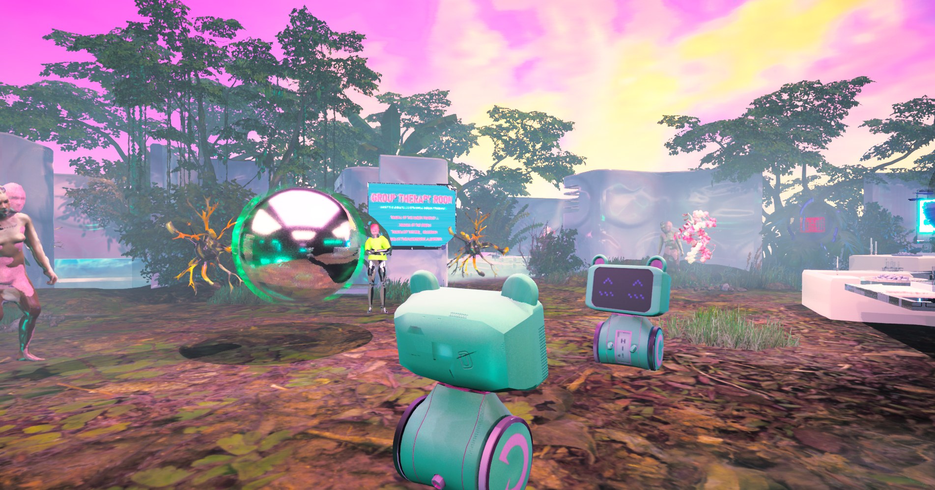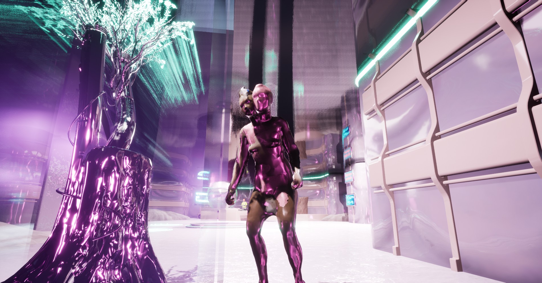 A hybrid concert performance naturally needs a part that takes place outside the theater space. And what could not be done otherwise during Corona and was implemented with Mozilla Hubs, now becomes a freestyle in the hybrid experience. The existing single game was taken as the basis for a multiplayer version that everyone can download from home and take part in the performance.