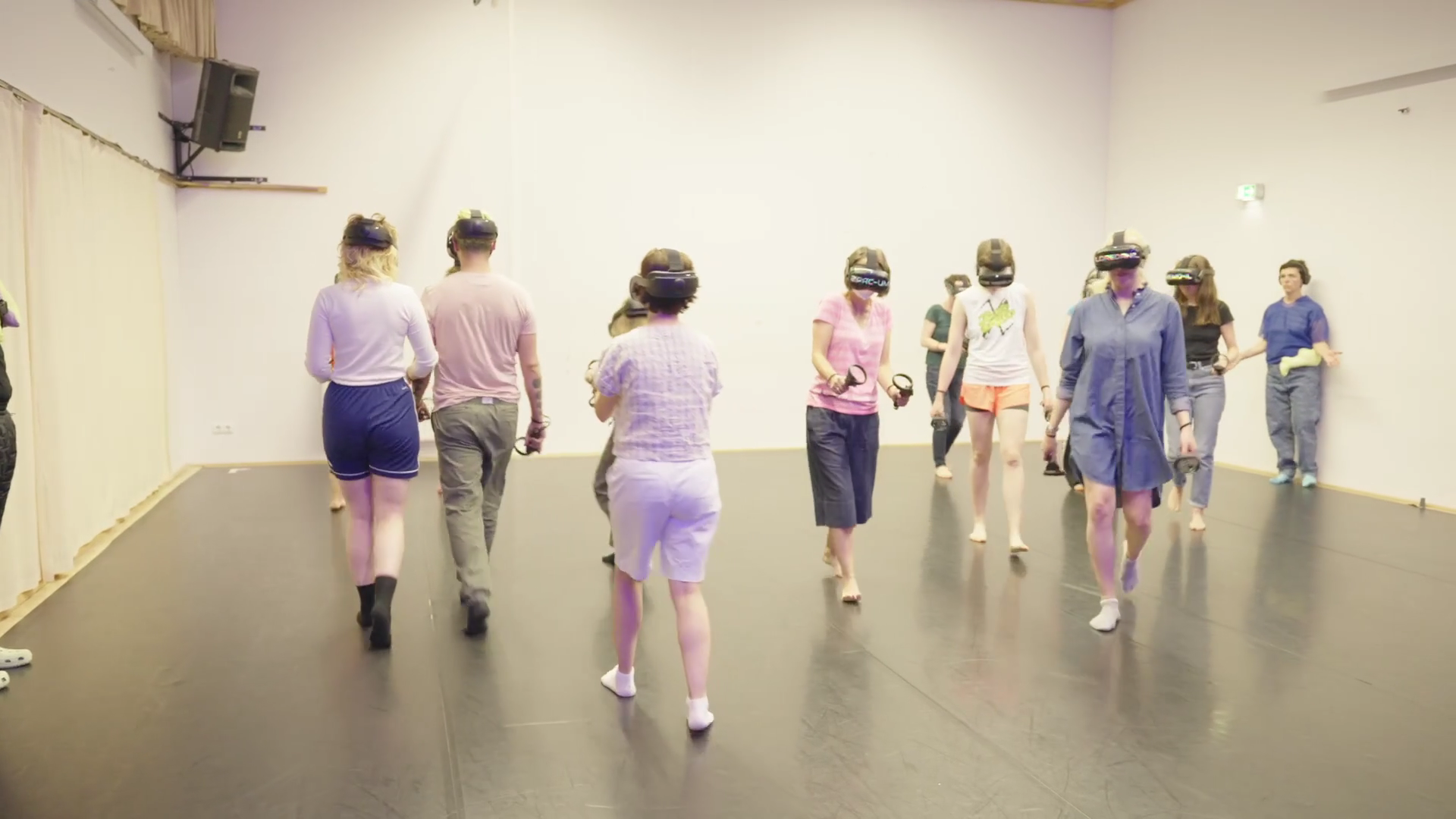 11 young people and I stand in a circle, we put VR headsets of the latest generation on our heads and enter a digital space. The perception of the digital space and the physical presence of the real studio are congruent: the floor visible in the glasses is the floor under our feet, the walls of the digital space are the walls of the studio. And - something no one has managed before - where 11 other young people were standing a moment ago, 11 avatars are now visible in the glasses, looking different from the people who were there before, but moving just like them. All participants see all the other avatars: where they stand, how they walk through the room, and precisely: how they dance.
