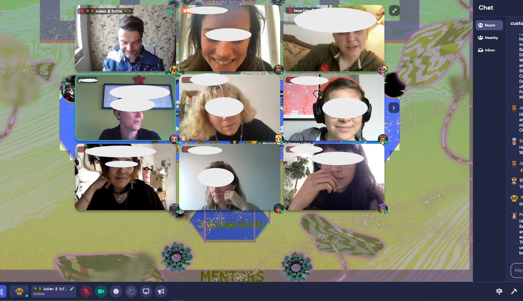 During the Online Hack Space - curated by Jeanne Charlotte Vogt - five groups experienced impulses on digital participatory art together with the HAU4 audience, exchanged ideas with each other and worked in various workshops on their project ideas with which they had previously applied for the Online Hack Space. At the end of the five-day event, the participants presented their concept, after which a jury selected two groups for a subsequent residency.